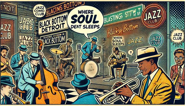 Vibrant Jazz Nights on Hastings Street, Detroit: A Comic Book-Style Tribute