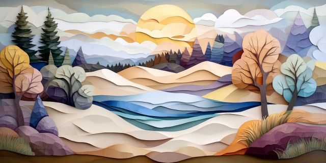 Title: Serene Multi-layered Landscape Artwork Capturing Nature's Palette Photo ID: 75531 |