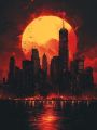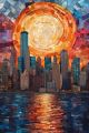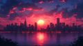 Fiery Sunset Silhouettes Unnamed Cityscape in Artistic Reflection