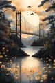 Golden Bridge Over Tranquil Waters at Twilight