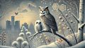 "Winter Whispers: An Elegant Great Horned Owl and Chick in Detroit"