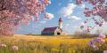 Pastoral Spring: A Historic Lighthouse Amidst Blossoming Cherries