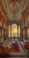 Sunset Views Through the Grand Archway of a Luxurious Hall