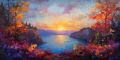Autumn Splendor Overlooking a Serene Lakeside Sunset