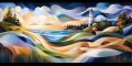 Cubist Rendition of Holland State Park: Lighthouse Amidst Circular Harmony