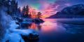 Surreal Aurora Over Snowy Mountain Peaks in a Fantasy Landscape