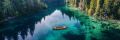 Serene Beauty: A Lone Canoe Floating on a Crystal-Clear Lake