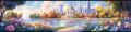 Enchanting Floral Tapestry with Subtle Detroit Skyline in the Distance