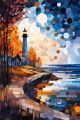 Coastal Serenity: A Modern Mosaic View of a Lighthouse at Sunset