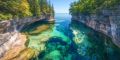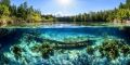 Sunlit Waters Over a Submerged Shipwreck in a Crystal-clear Lake