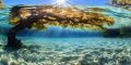 Majestic Underwater Tree Basking in Sunlight Above and Below Water