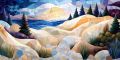 Stylized Landscape Painting of Geometric Nature and Vibrant Hues