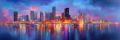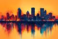 Vibrant Sunset Over Detroit Skyline: A Dazzling Cityscape Artwork