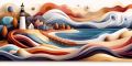 Captivating Coastal Village Illustration with Lighthouse and Waves