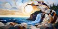 Serene Waves and Warm Sunset: A Visionary Seascape Artwork