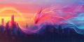 Ethereal Dragon Over Detroit Skyline in Vivid Sunset Hues