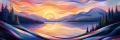 A Serene Dawn: Modern Stylized Landscape of Sunrise over Lake