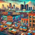 Vibrant Watercolor Depiction of Eastern Market with Detroit Skyline