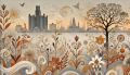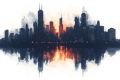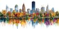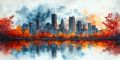 Autumn Colors Reflecting the Vibrant Detroit Skyline in Watercolor