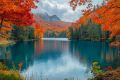 Autumn's Embrace Over Tranquil Lake and Lush Forests