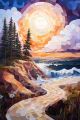 Mosaic Dawn: A Stylized Interpretation of Natural Coastal Beauty