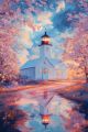 Dreamy Spring Blossoms Surround a Secluded Lighthouse