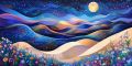Enchanting Moonlight Embrace Over Floral Hills and Waves