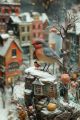 Wintry Enchantment: Birds Over Snow-Dusted Miniature Village