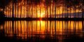 Golden Sunset Silhouettes Reflecting in Tranquil Waters