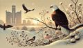Winter Majesty: Bald Eagle Overlooking Snowy Detroit Skyline