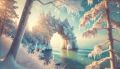 Golden Sunrise Over Snow-Draped Forest Landscape