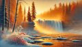 Captivating Geometric Interpretation of a Sunset Over Waterfall