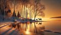 Sunset Glow Reflecting on Birch Trees Along a Serene River