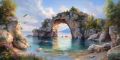 Tranquil Afternoon at A Rocky Archway by the Serene Sea