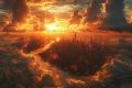 Vibrant Dusk Over Surreal Landscape: A Celestial Art Display