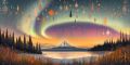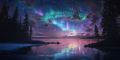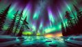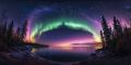 Celestial Aurora Over Tranquil Lake and Pine Forest
