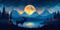 Enchanting Nighttime Vista with Majestic Moose under a Starry Sky