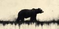 Majestic Silhouette of a Lone Bear in Monochrome Artistry